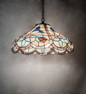 MSRP: $475.00$351.50One Light Pendant by Meyda Tiffany from the Baroque collection in Mahogany Bronze finishRegal scrolls of Royal Blue with coordinating diamonds adorn this handsome Tiffany-style stained glass shade...