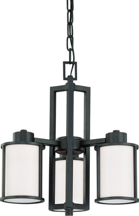 MSRP: $428.38$308.43Three Light Chandelier by Nuvo Lighting from the Odeon collection in Aged Bronze finishOdeon, 3 Light, (convertible up/down) Chandelier with Satin White Glass